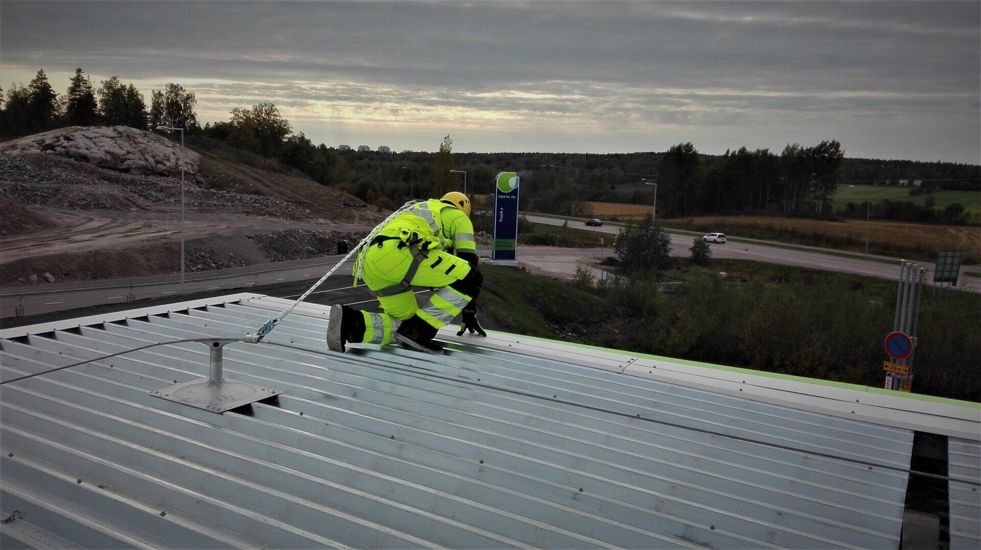 When collective edge protection is not suitable to secure your situation, our lifeline systems offer absolute safety. In the case of a horizontal lifeline system, the user wears a harness with lanyard or automatic fall arrester. This is attached to a permanent lifeline track which is attached to the construction by means of anchor points. A special lifeline runner ensures that the user passes the anchor points without any problems and without hook up. In order to guarantee user safety when working with our lifeline systems, we use an ODIN calculation tool specifically designed for this purpose.